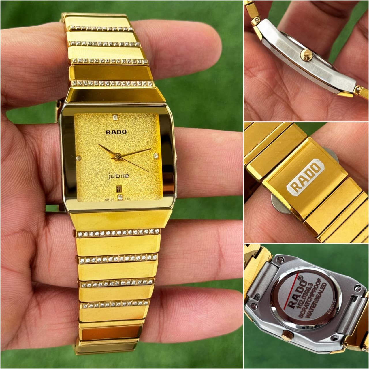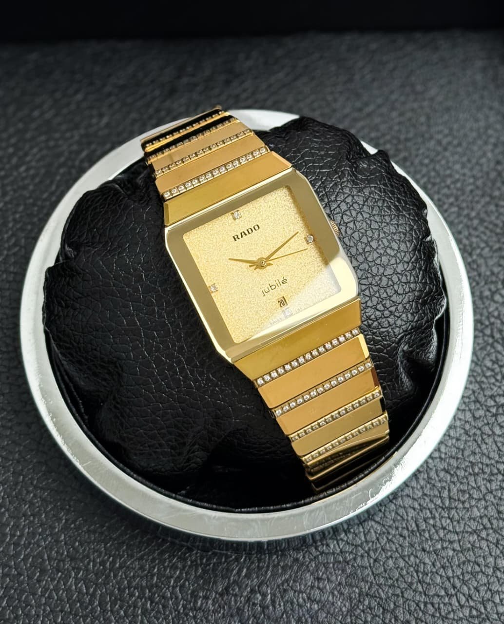 -Dial: Gold with diamond markers, luminous accents, and Rado logo